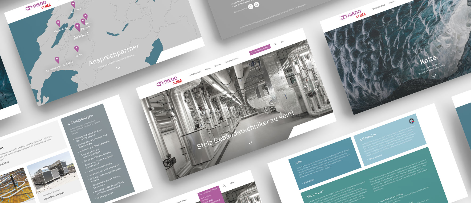 Die Website der Riedo Clima AG war seit Jahren nicht mehr erneuert worden. Da sich die Firma aber stetig weiterentwickelt hatte, sollte auch der Internetauftritt erneuert und dem restlichen Firmenauftritt angepasst werden.